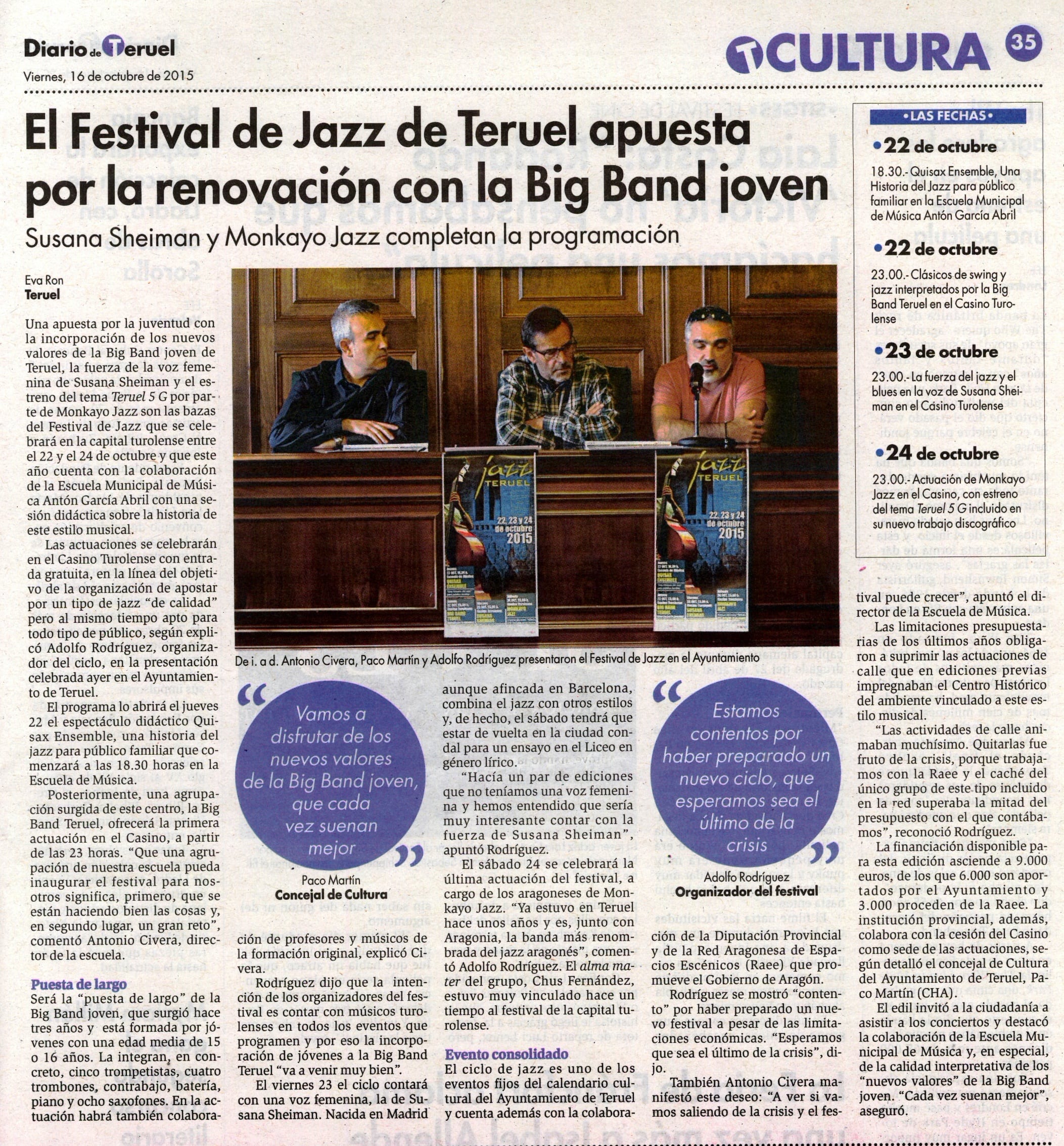 Día 22 de octubre, jueves, Festival de Jazz Teruel 2015: