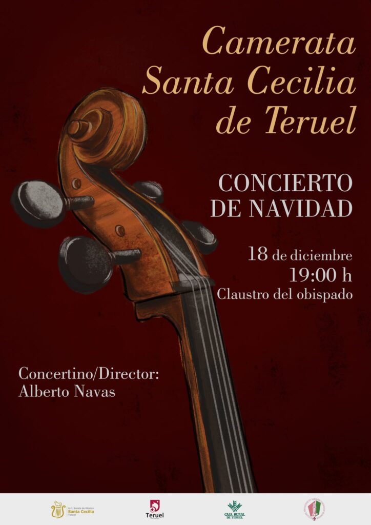 El sábado 18 de diciembre, la Camerata Santa Cecilia de Teruel ofrecerá su Concierto de Navidad en el Claustro del Obispado, a las 19 horas, con música clásica de corte navideño. Entrada libre hasta completar aforo.