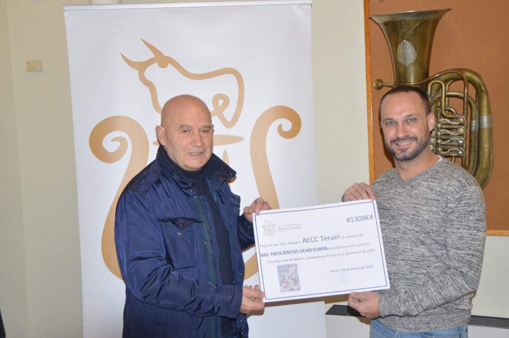 Hoy se ha hecho entrega del cheque con la recaudación del concierto benéfico “Una Navidad… de miedo” a la AECC y MANOS UNIDAS de 1308€ a cada asociación que seguro que servirán para ayudarles en sus proyectos. Gracias a todos los que colaborasteis de una y otra manera.