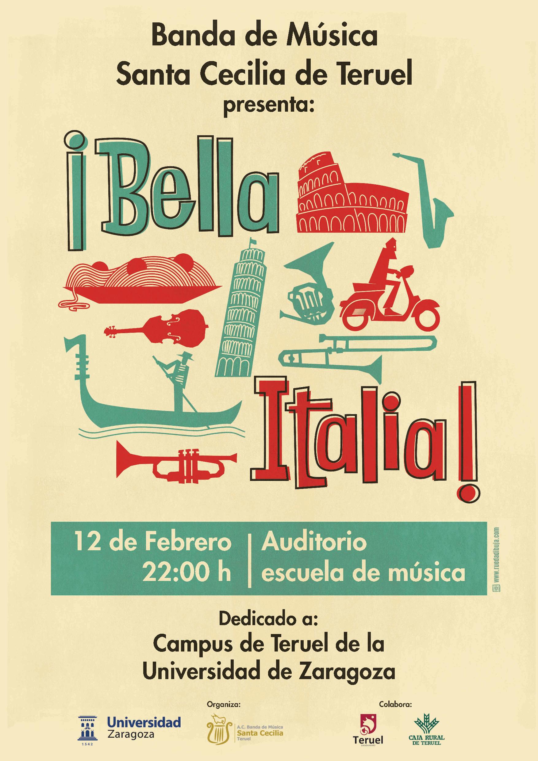 - Día 12, viernes, CONCIERTO “Bella Italia” de la Banda de Música “Santa Cecilia” de Teruel. Lugar: Auditorio a las 22.00 horas.
