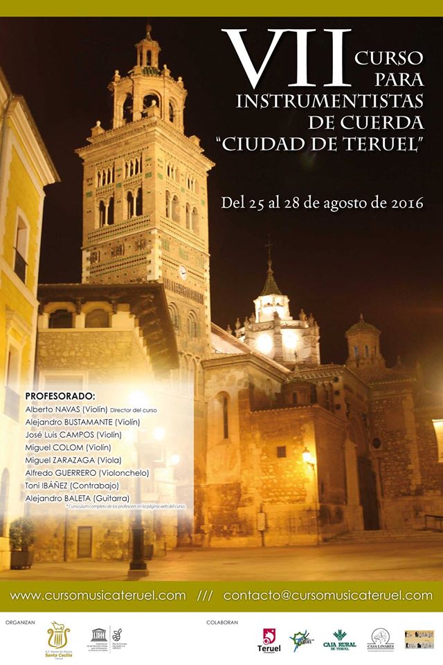 Un año más, y ya son siete, se pone en marcha el «Curso para instrumentistas de Cuerda Ciudad de Teruel» y el VII Festival de Música «Ciudad de Teruel», festival que se organiza de manera paralela al curso, y que organiza nuestra Asociación, en colaboración con el Ayuntamiento de Teruel, y bajo la dirección del violinista Alberto Navas Cortés.